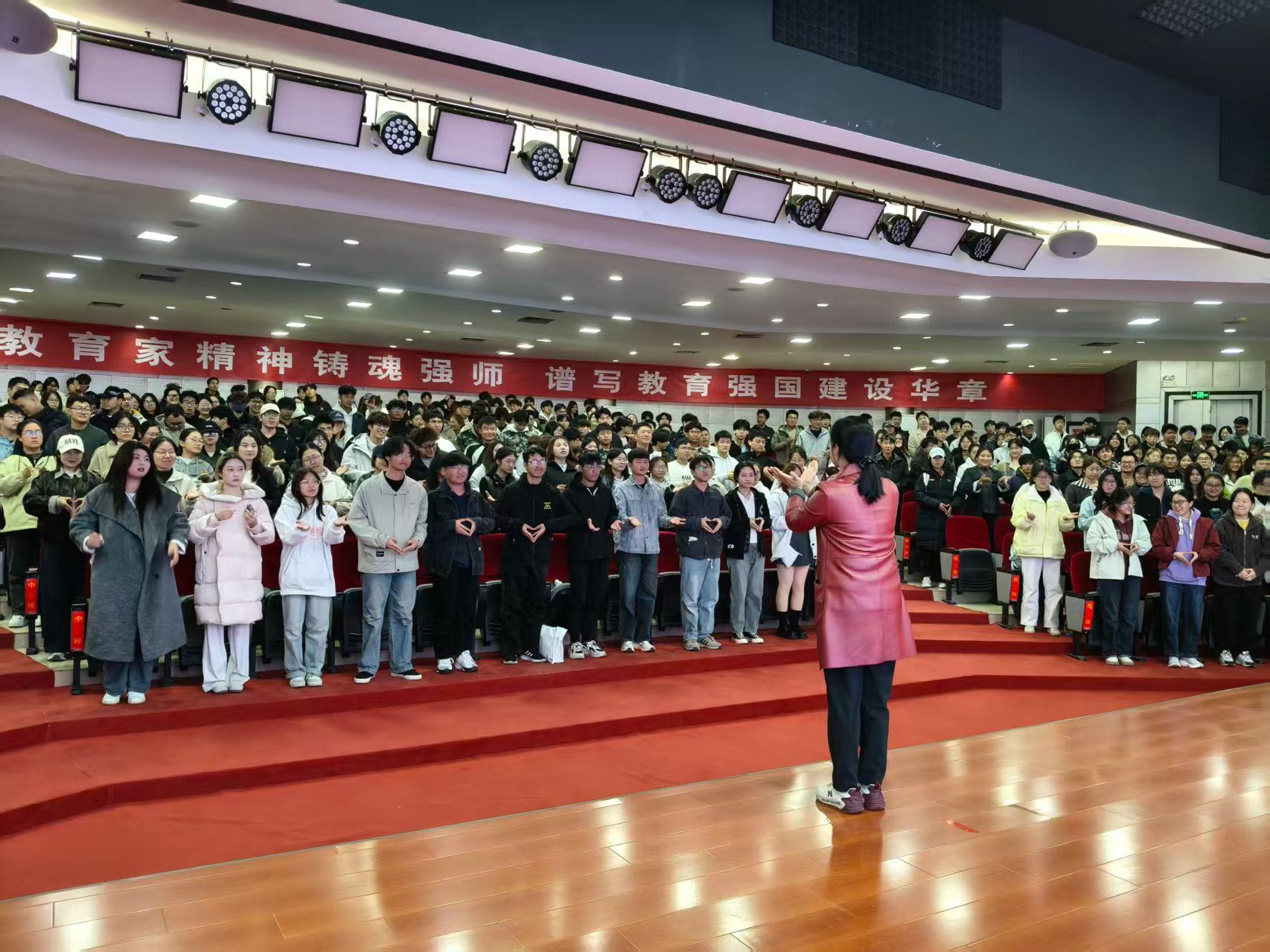 心理健康教育中心副主任李宏带领全场师生以手语形式展现了本届宣传周活动主题“心光引路,青春启航”。